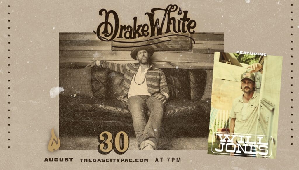 Finally, we finish the summer concert season with country artist Drake White with featured opener Will Jones – great tunes, good vibes, and an unforgettable night!
